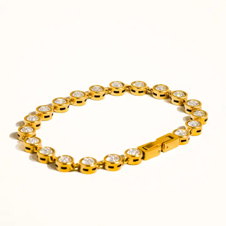 Amity 18K Gold Non-Tarnish Round Rhinestone Bracelet