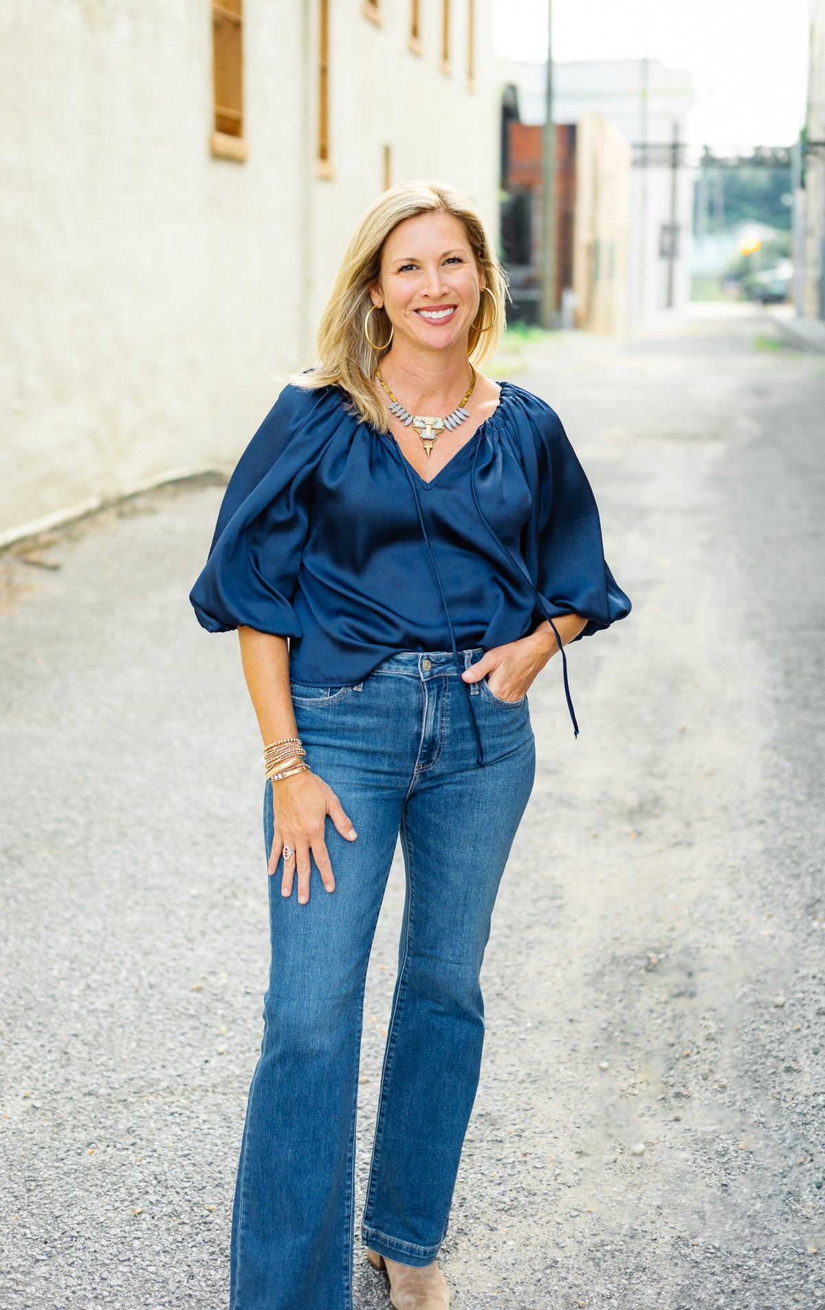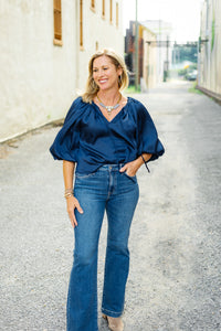 Elevate your wardrobe with The Aster Top in Navy, crafted from glossy hammered satin for a luxurious feel. Its convertible design offers versatile styling options, while the rich navy hue adds a timeless touch. Made with durable 100% polyester, this top combines elegance with easy care, making it perfect for any occasion.