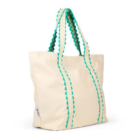 The Nantucket Beach Tote is stylish and functional, made from durable canvas with elegant scalloped edging. With spacious interior pockets, it keeps your beach essentials organized and within reach all day long. * Canvas. * Snap closure. * Exterior front slip pocket. * Interior zip pocket. * Two interior slip pockets. * Nylon liner. * 15”L x 7”W x 15”H. * 10” handle drop.