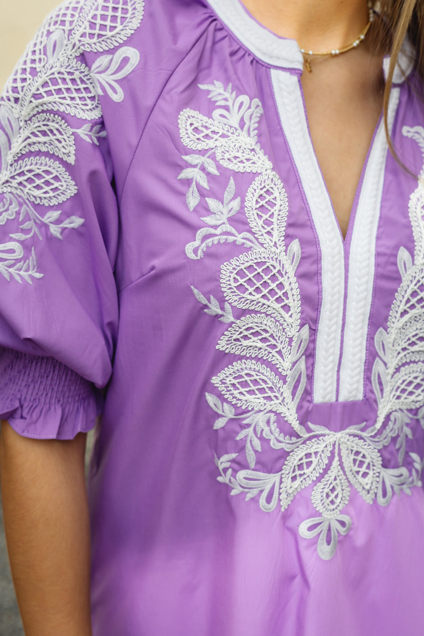 The Leonie Dress is an elegant long maxi silhouette that brings effortless sophistication to any occasion. Crafted in a serene lavender hue, this stunning piece features intricate white embroidery and printed details across the front, creating a captivating focal point that draws the eye. The flowing maxi length offers graceful movement and timeless appeal, making it perfect for weddings, garden parties, or elevated everyday wear. Whether you're seeking a show-stopping statement piece or a versatile wardrobe essential, The Leonie Dress delivers both style and comfort in one beautifully designed package.
