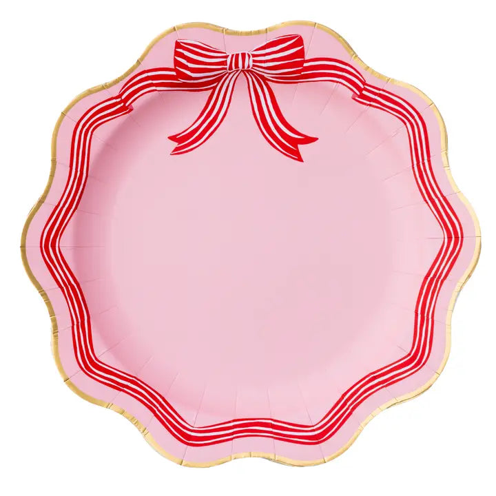 Add sophistication to your holiday table with our Elegant Pink Peppermint Bow Dinner Plates! Featuring a charming red bow and whimsical scalloped edges, these plates enhance any place setting while mimicking the elegance of chic china.