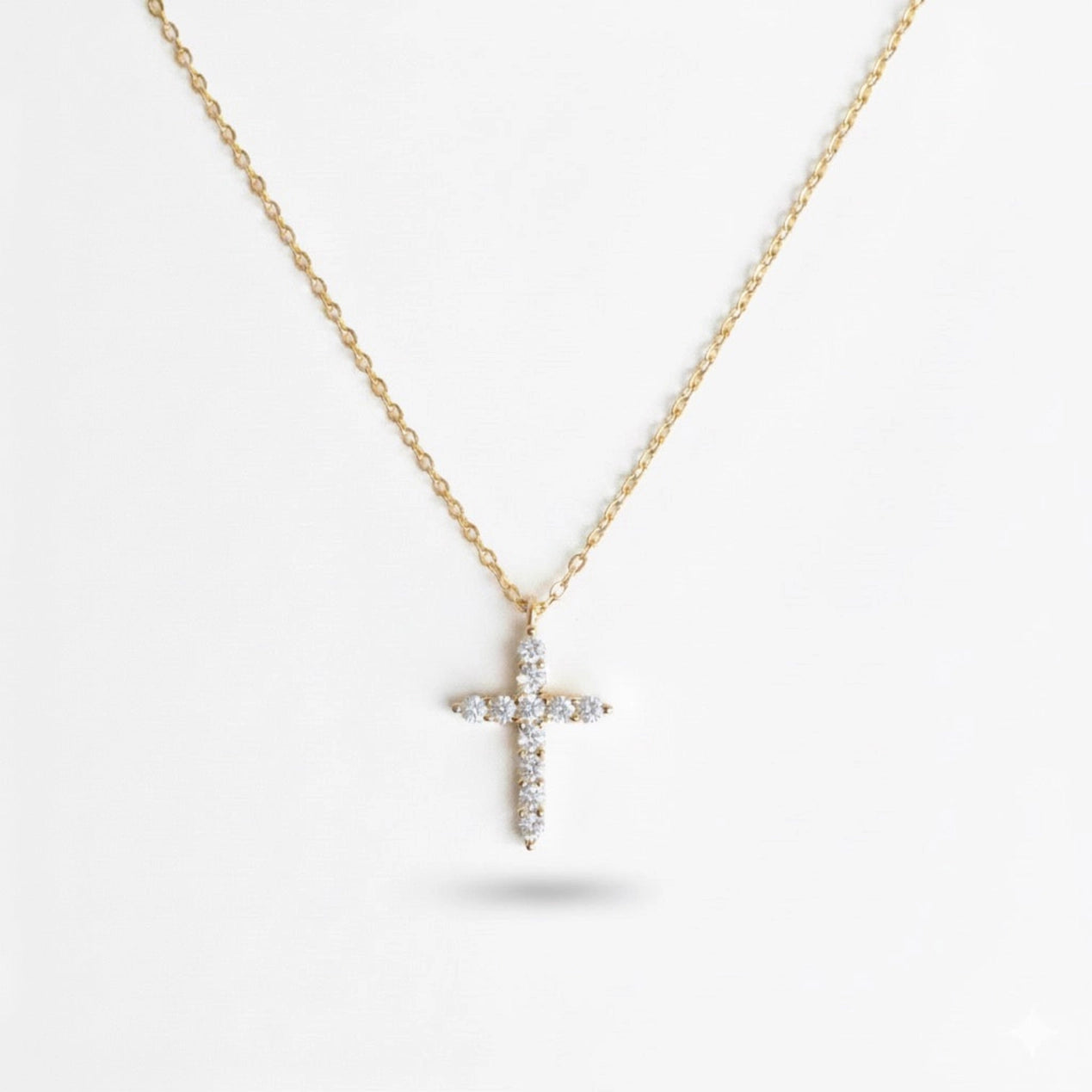 Radiate subtle elegance with the 18K Gold Dipped Sterling Silver Dainty Cross Necklace, a timeless piece that blends faith with refined style. Featuring a delicate cross pendant accented with shimmering stones, this necklace is the perfect everyday reminder of grace and beauty. ✔️ Dainty Cross Design – A minimalist yet meaningful symbol of faith ✔️ Sparkling Detail – Adds a gentle shine to your neckline ✔️ Everyday Elegance – Perfect for layering or wearing on its own Dimensions: Approximately 16" with 2" extender Materials: 18K real gold dipped sterling silver, for a beautiful, rich tone Features: Hypoallergenic, lead & nickel free, made for long-lasting shine Imported