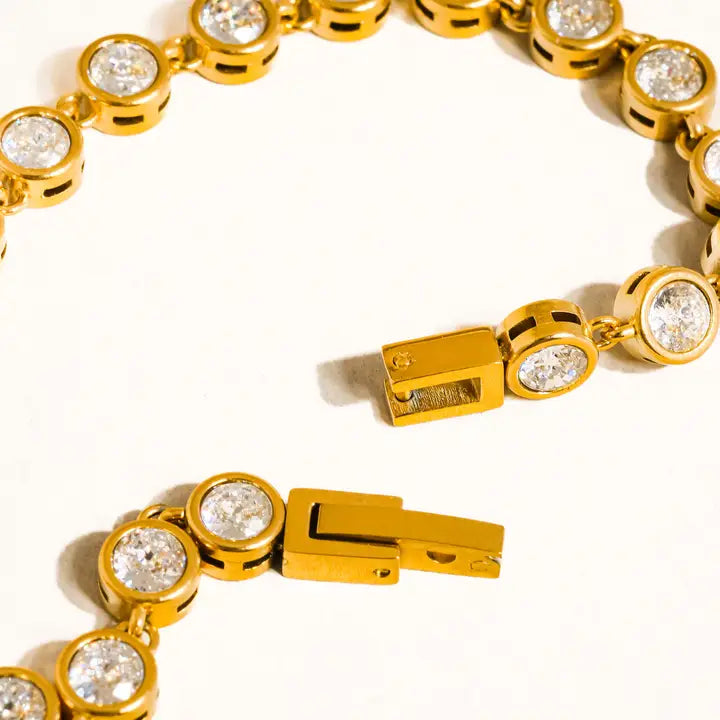 Amity 18K Gold Non-Tarnish Round Rhinestone Bracelet
