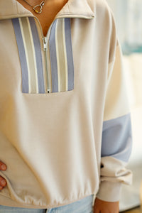 Stay stylish and comfortable in The Loretta Sweatshirt. This long sleeve half-zip features a bold color block design that effortlessly elevates your casual look. Made from soft, cozy fabric, it offers warmth and a relaxed fit perfect for layering. The half-zip closure adds versatility, letting you adjust your style and comfort throughout the day. Whether you're out running errands or meeting friends, this sweatshirt combines fashion and function seamlessly.