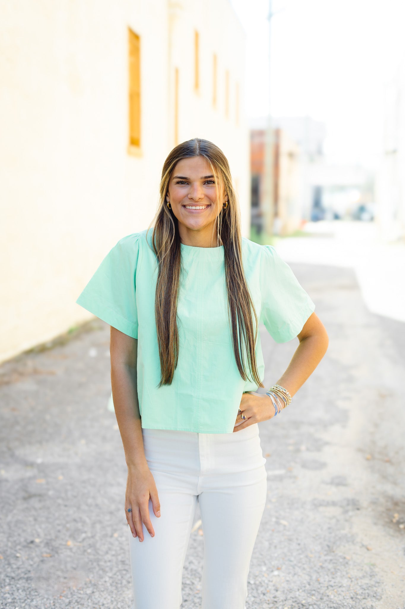 The Crista Top is a modern take on casual comfort. This short-sleeve boxy top features a relaxed silhouette with thoughtful design details—seam accents throughout, a round neckline, and a pleated back panel add visual interest. The keyhole button closure on the back offers a subtle twist on traditional styling. Perfect for layering or wearing solo, it's an effortless piece that works from weekend errands to casual outings.