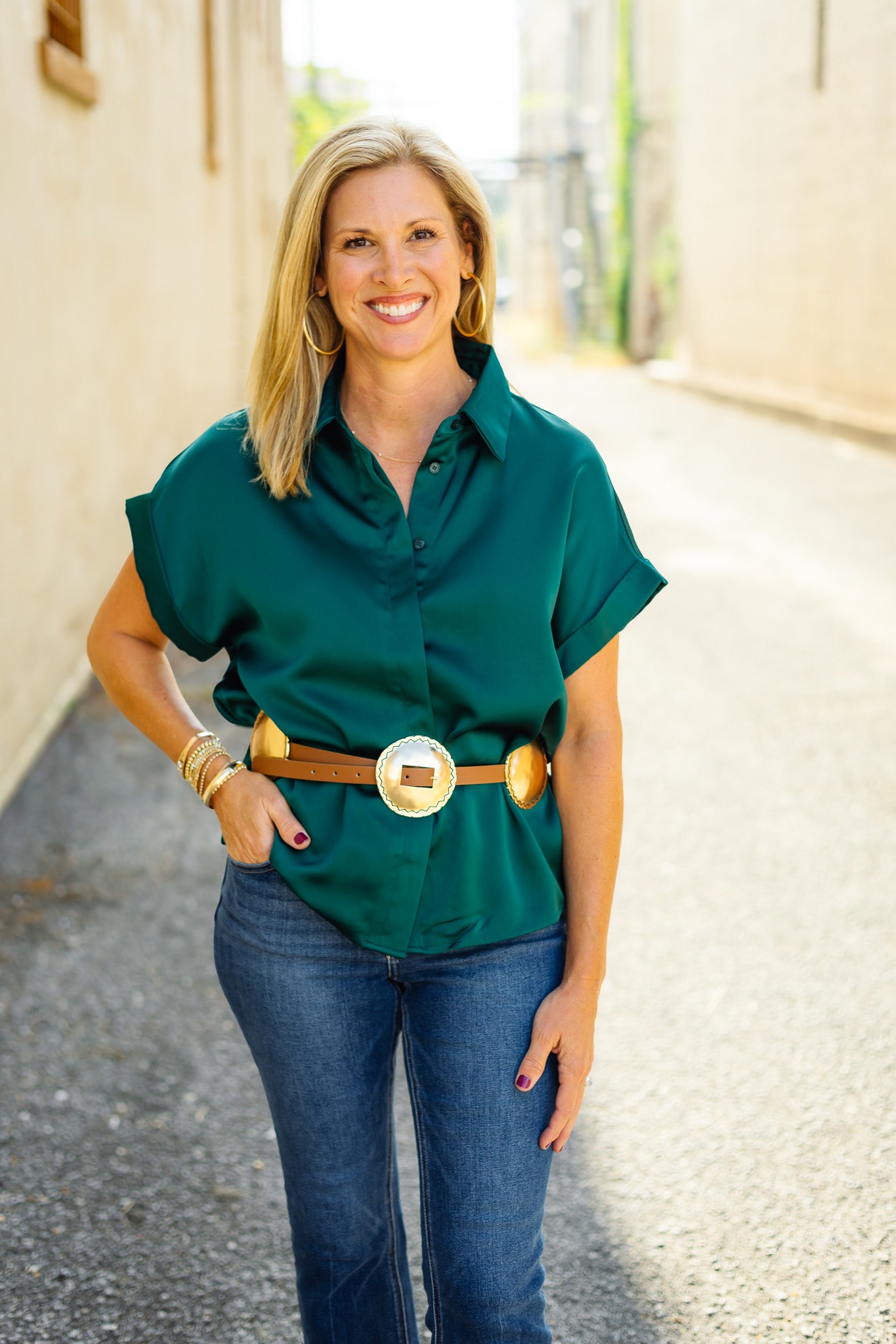 The Cristina Top offers a polished look with its classic collar neck and button-down front, crafted from 100% polyester for a smooth, comfortable feel. Its lightweight fabric ensures all-day wearability, making it a versatile addition to your wardrobe for both office and casual outings. Elevate your style effortlessly with this timeless, easy-care shirt designed to keep you looking sharp and put-together wherever you go. (Comes without the belt)