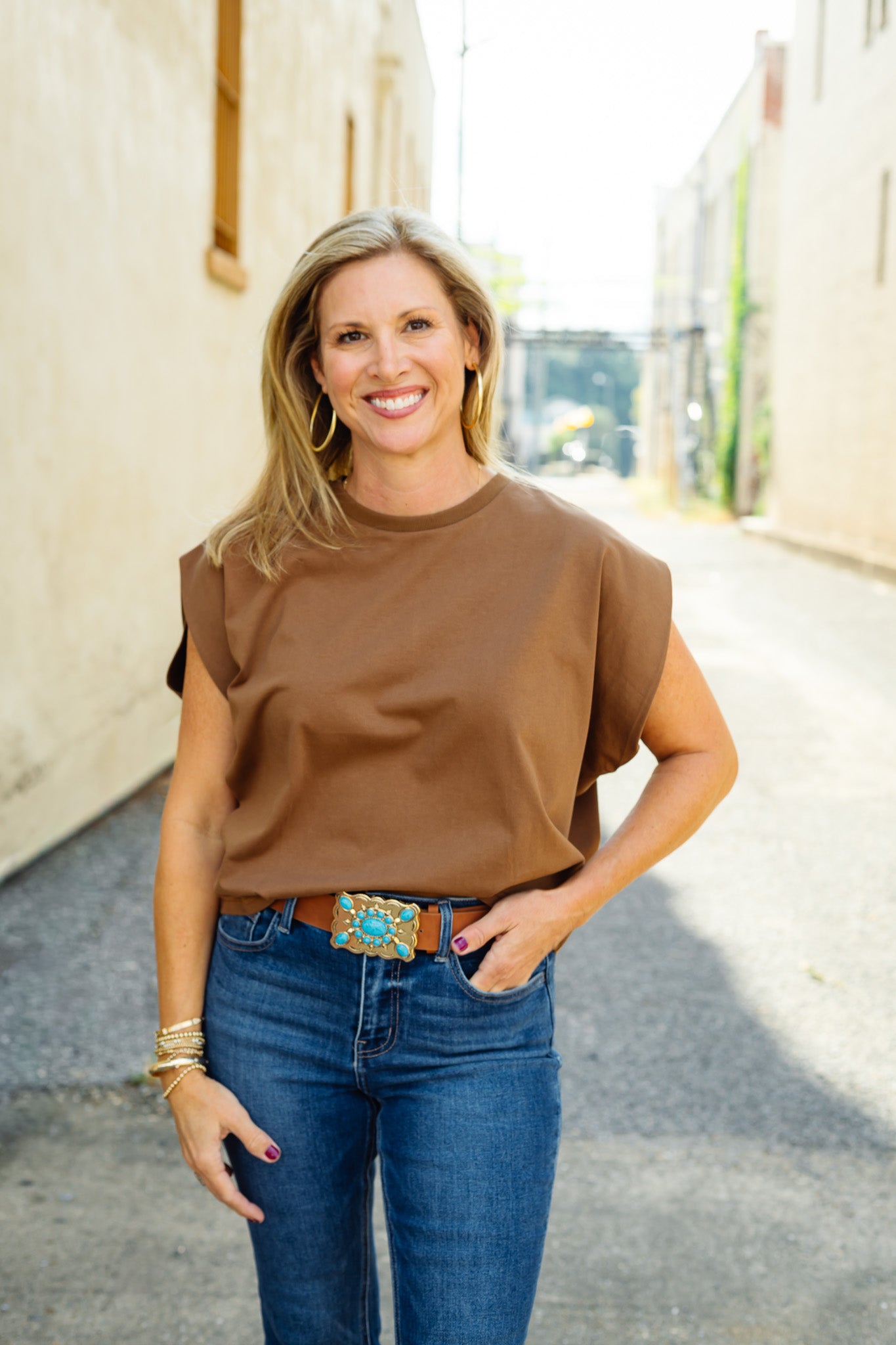 Experience comfort and style with The Tepper Top in Brown, crafted from 100% pure cotton. Its wide shoulder design offers a flattering silhouette while ensuring breathability and softness throughout the day. Perfect for layering or wearing alone, this versatile top blends casual ease with a touch of sophistication.