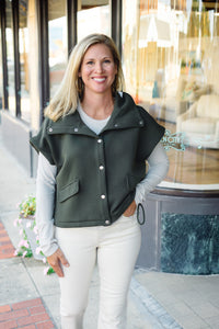 Elevate your wardrobe with The Paisley Top in Olive, featuring a high neck design that adds a touch of sophistication. Crafted from a comfortable blend of 57% cotton, 40% polyester, and 3% spandex, this vest top offers a flattering fit with gentle stretch for all-day ease. Its versatile olive shade pairs effortlessly with any outfit, making it a must-have for stylish layering or solo wear.