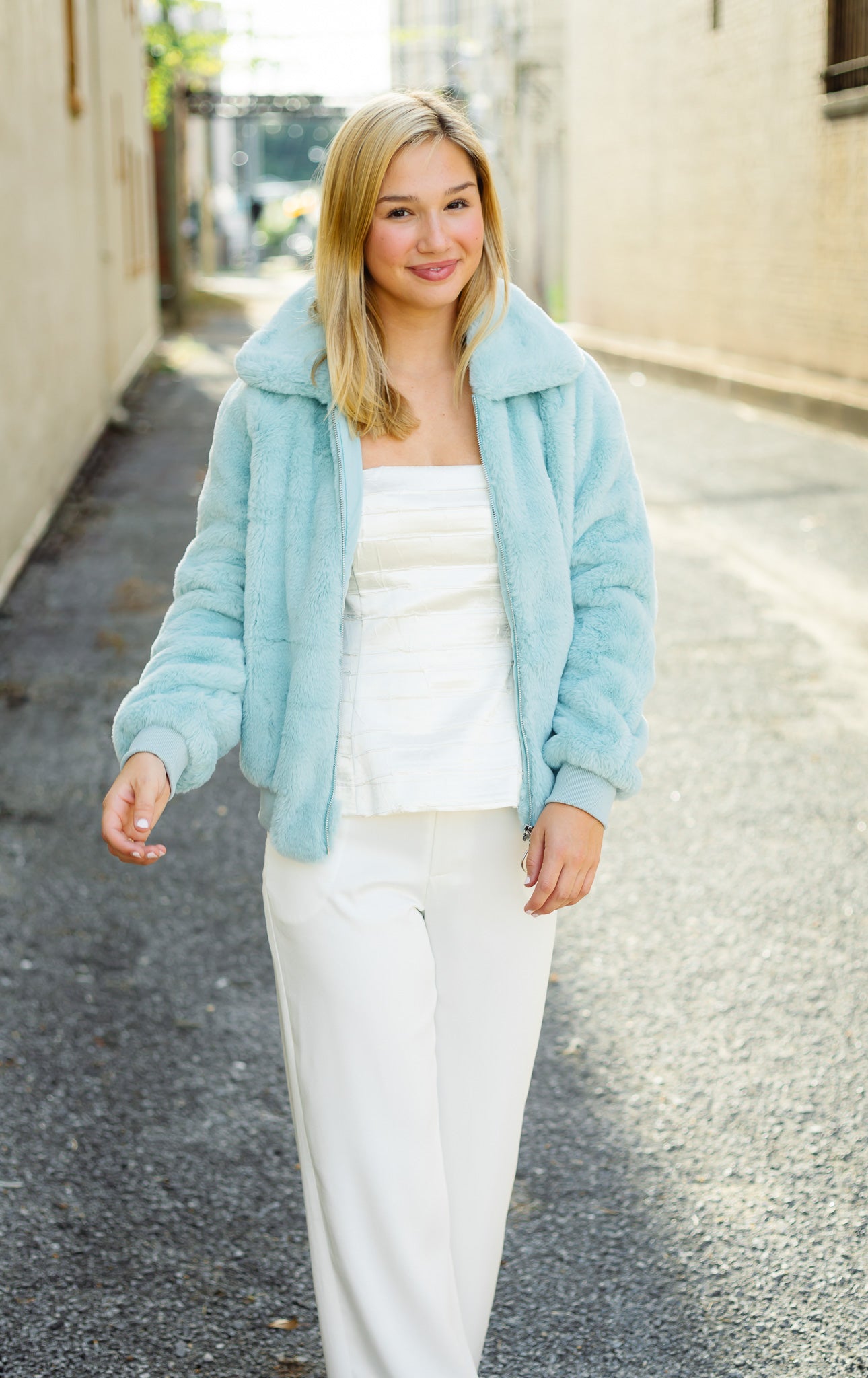 The Sabrina Coat offers cozy elegance with its soft imitation fur, perfect for cooler days. Featuring long sleeves, a wide lapel collar, and a full-length front zip closure, it combines style and warmth effortlessly. Doubled for extra insulation and finished with ribbed edges, this coat ensures a comfortable fit. Measuring 24.4 inches from the shoulder in size S, it’s crafted from 100% polyester for durability and easy care. Elevate your outerwear collection with this chic, versatile piece designed to keep you warm without compromising on style.