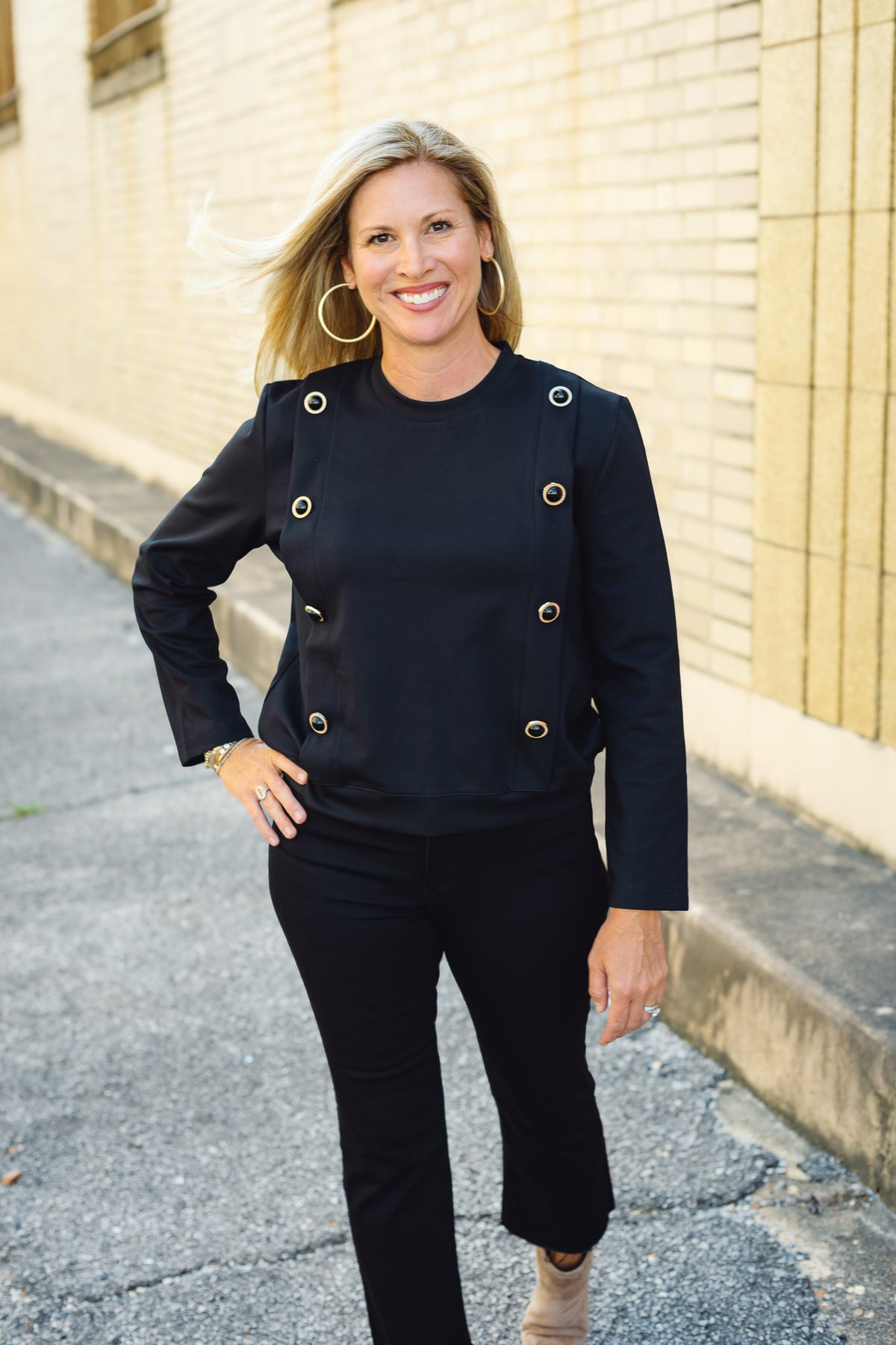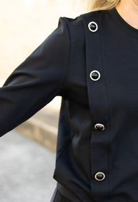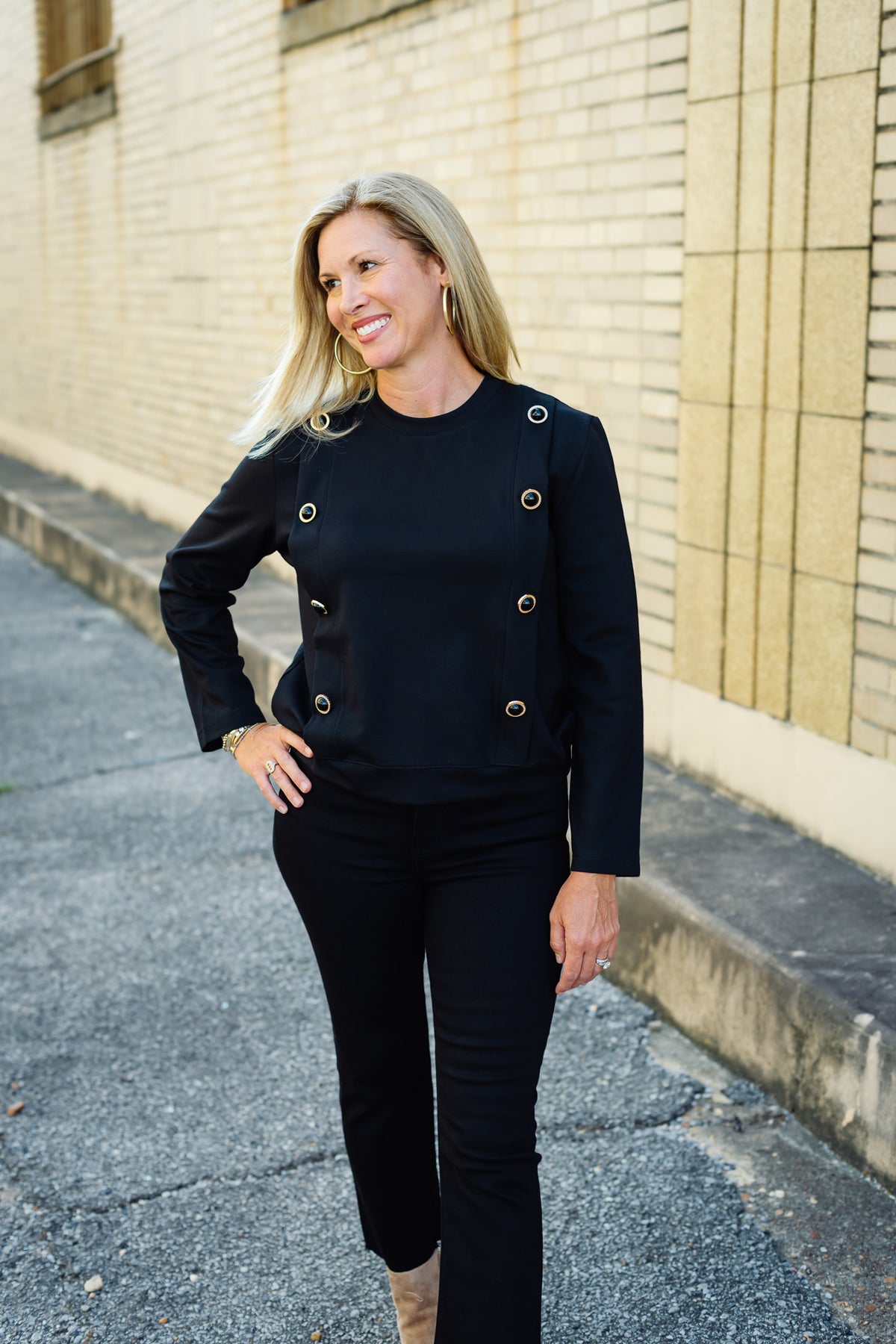 Designed with novelty front button details along the princess lines of the placket. Crafted from a luxurious knit fabric, this top combines comfrot with a sophisticated silhouette. 50% cotton 43% polyester 7% spandex