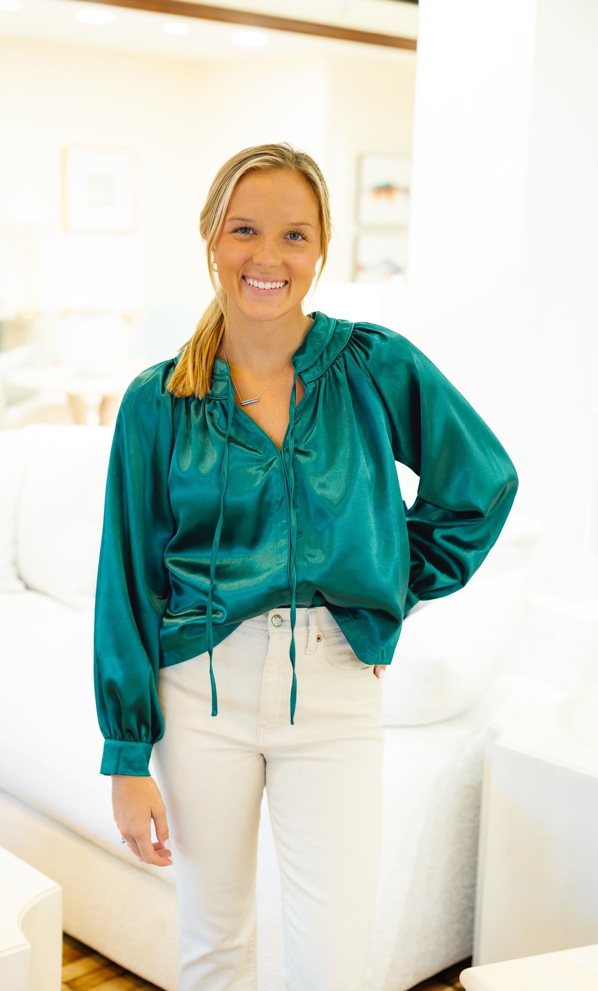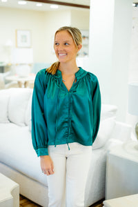 Elevate your wardrobe with the Sona Top in Green by CIEBON. Featuring a chic piped neckline and flattering long sleeves, this top combines timeless style with effortless sophistication. Its rich green hue adds a refreshing pop of color, perfect for both casual days and polished evenings. Designed to enhance your everyday look, the Sona Top offers comfort and a sleek silhouette that moves with you. Make it your go-to piece for versatile, standout style.