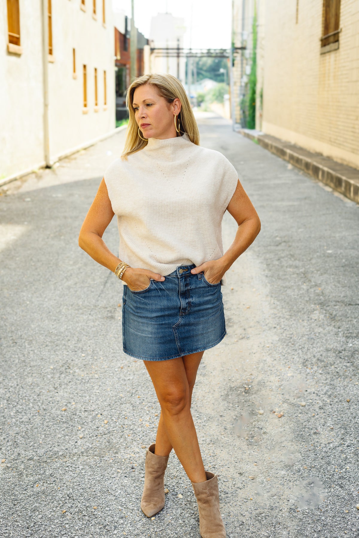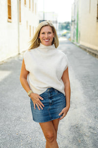 Elevate your wardrobe with the Willa Top in Cream, a sleeveless knit designed to blend comfort and sophistication. Its mock neck adds a touch of modern elegance, while the soft cream color offers versatile styling options for any season. Perfect for layering or wearing alone, this top delivers effortless chic for both casual and dressy occasions.