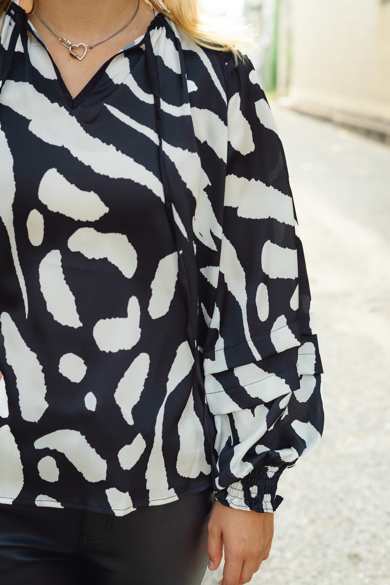Elevate your wardrobe with The Birkley Top, featuring a stylish abstract print on smooth satin fabric. Its smocked shoulder detail and tie neck add a refined, feminine touch, while the 100% polyester construction ensures lasting comfort and easy care. Perfect for dressing up or casual chic, this blouse effortlessly combines elegance with everyday wearability.
