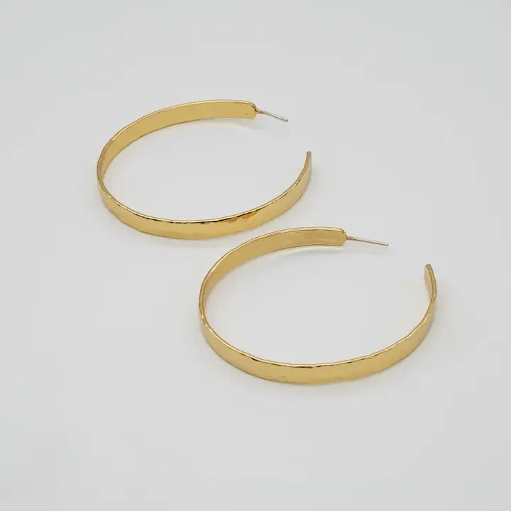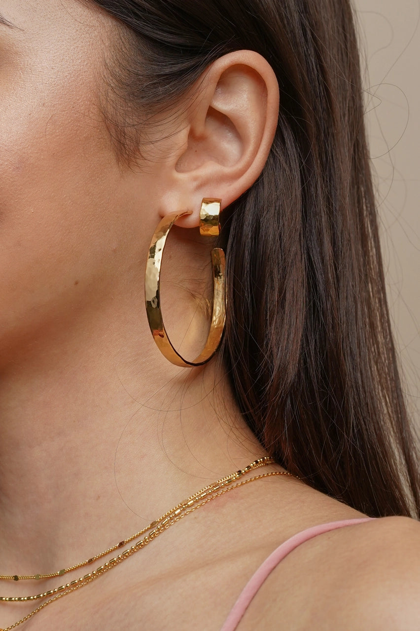 PRODUCT DETAILS Demi-Fine💧 Brass 24K Gold Sterling Silver Ear Post Handmade Hypoallergenic Nickel Free SIZE: 55mm long (2.2" aprox.), 5 mm wide DESIGNER NOTE Bold hoops for a bold look, these earrings are designed for you to stand out, beautiful!
