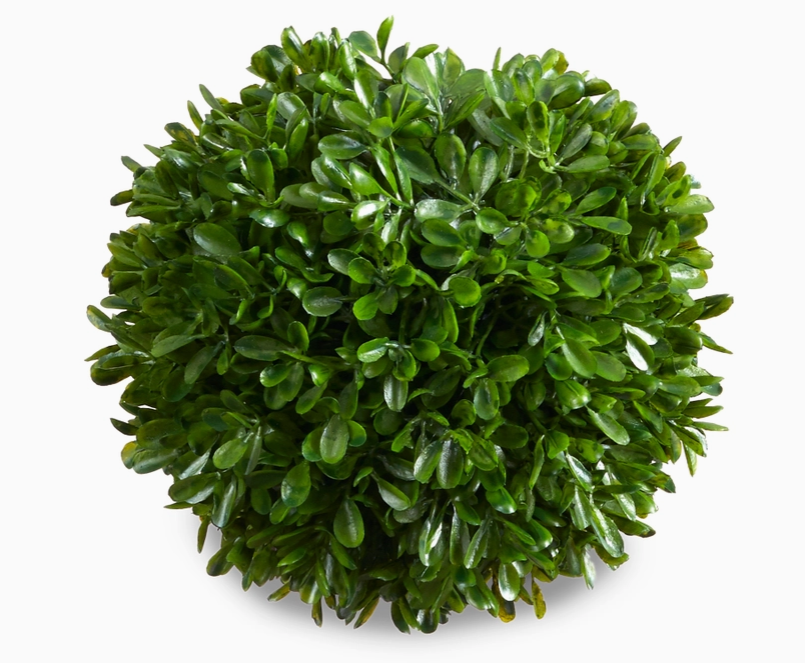 Unlike our signature Preserved Greens, these new Faux Boxwood Orbs are more durable by design. A great accent for covered porch or entryway. 5 x 5 x 5. Interior use only. Dust with dry cloth. Avoid moisture and direct sunlight.