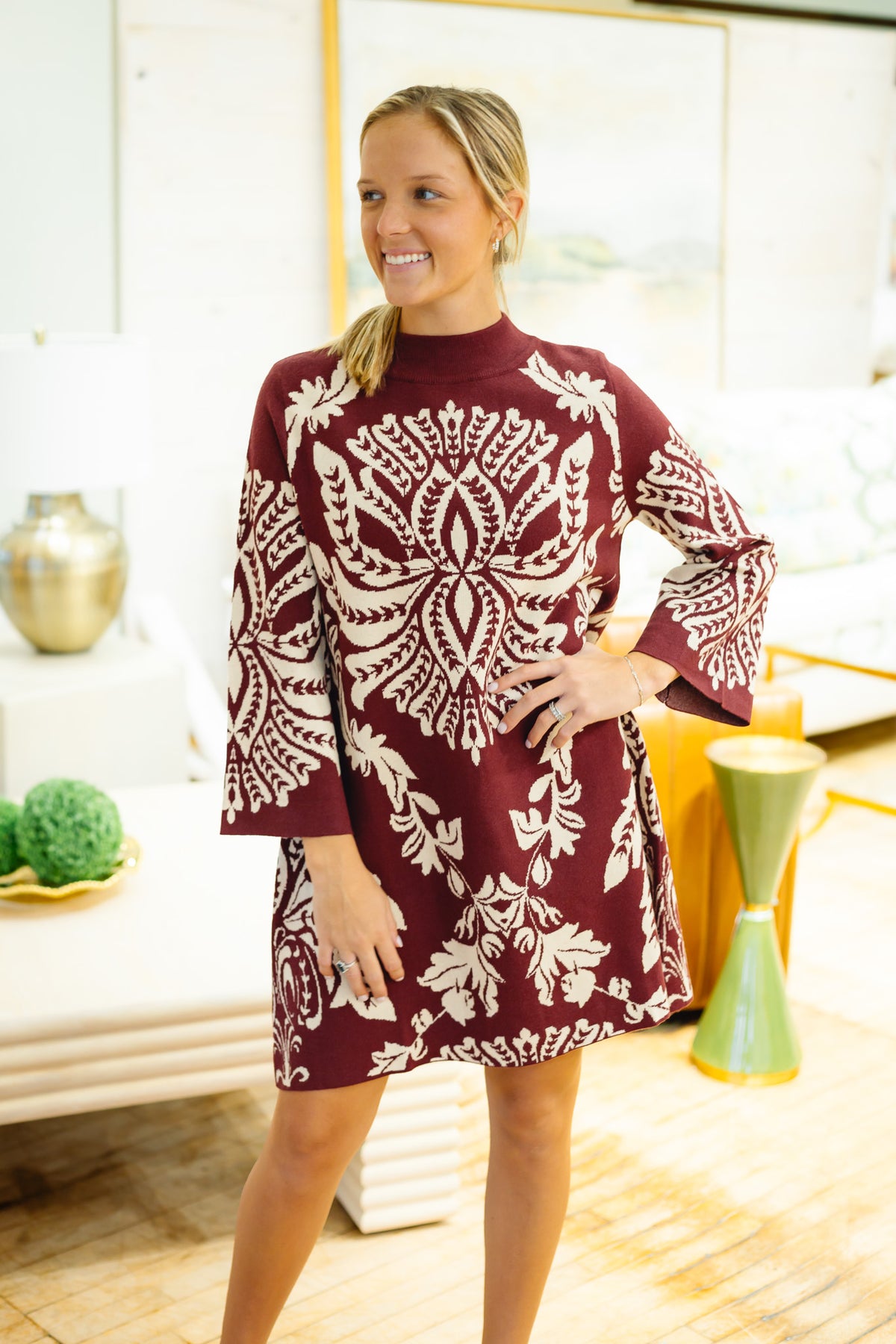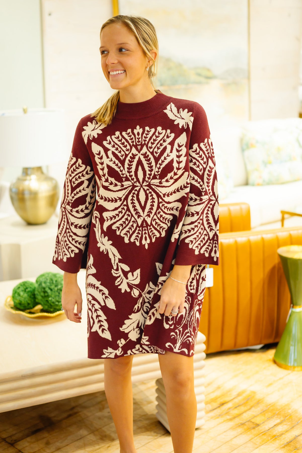 The Bettie Dress blends cozy comfort with modern style, featuring a chic mock neck and a flattering A-line silhouette. Crafted from a soft knit fabric—50% viscose, 25% nylon, and 25% polyester—this two-tone abstract print sweater dress offers warmth without bulk. Its unlined design ensures easy layering and all-day wearability. Perfect for elevating your everyday look with understated sophistication.