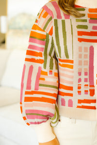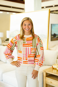 The Brittan Sweater combines vibrant colors with comfortably stretchy, oversized sleeves for a stylish, relaxed fit. Crafted from a soft knit blend of viscose, nylon, and polyester, it offers both durability and cozy warmth. Designed in the USA, this sweater features a flattering 22-inch body length, 39-inch bust width, and 19.5-inch sleeves in size S, making it perfect for effortless everyday wear with a bold, colorful twist.