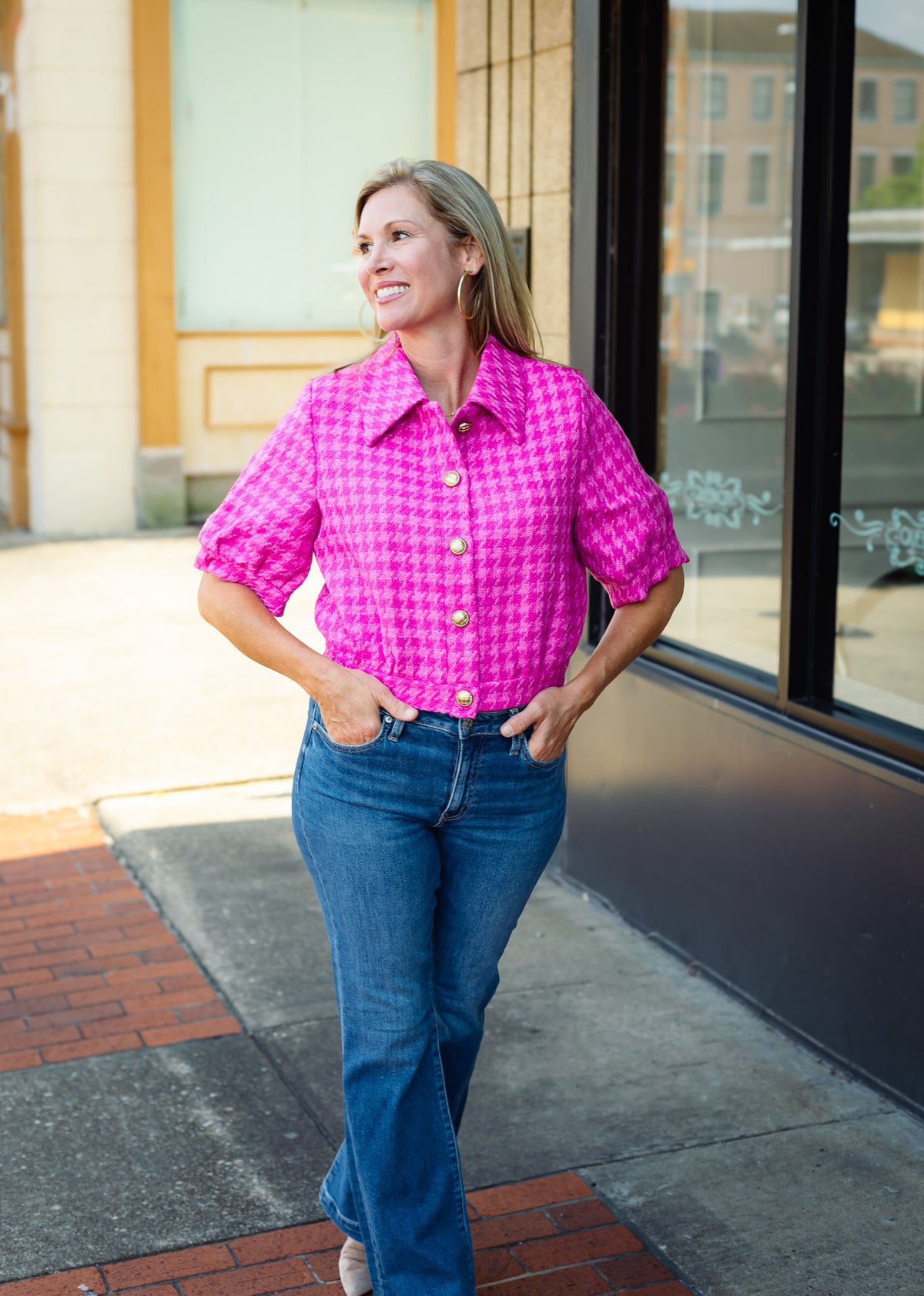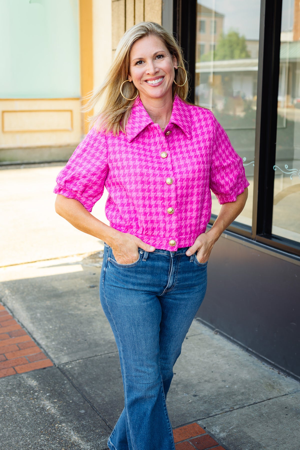 Elevate your wardrobe with the Celia Tweed Jacket in a charming pink hue. Its cropped silhouette and classic tweed texture offer a perfect blend of timeless style and modern flair. Ideal for layering, this jacket adds a polished touch to any outfit, whether dressing up for a special occasion or enhancing everyday looks. Experience refined elegance and versatile comfort with the Celia Tweed Jacket.