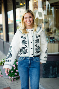 Elevate your wardrobe with the Petuna Jacket in Light Taupe, featuring a charming Peter Pan collar and delicate embroidered quilting. Crafted from a comfortable blend of 60% rayon and 40% polyester, this jacket offers both softness and durability. Its unique design adds a touch of elegance while providing cozy warmth, making it perfect for layering during transitional seasons. Stylish and versatile, the Petuna Jacket effortlessly enhances any outfit with a refined, feminine touch.
