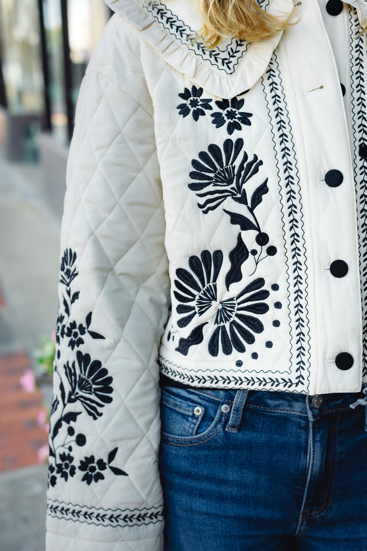 - Embroidered detail