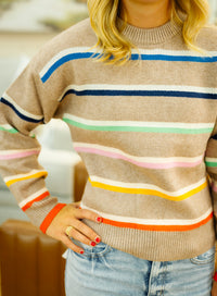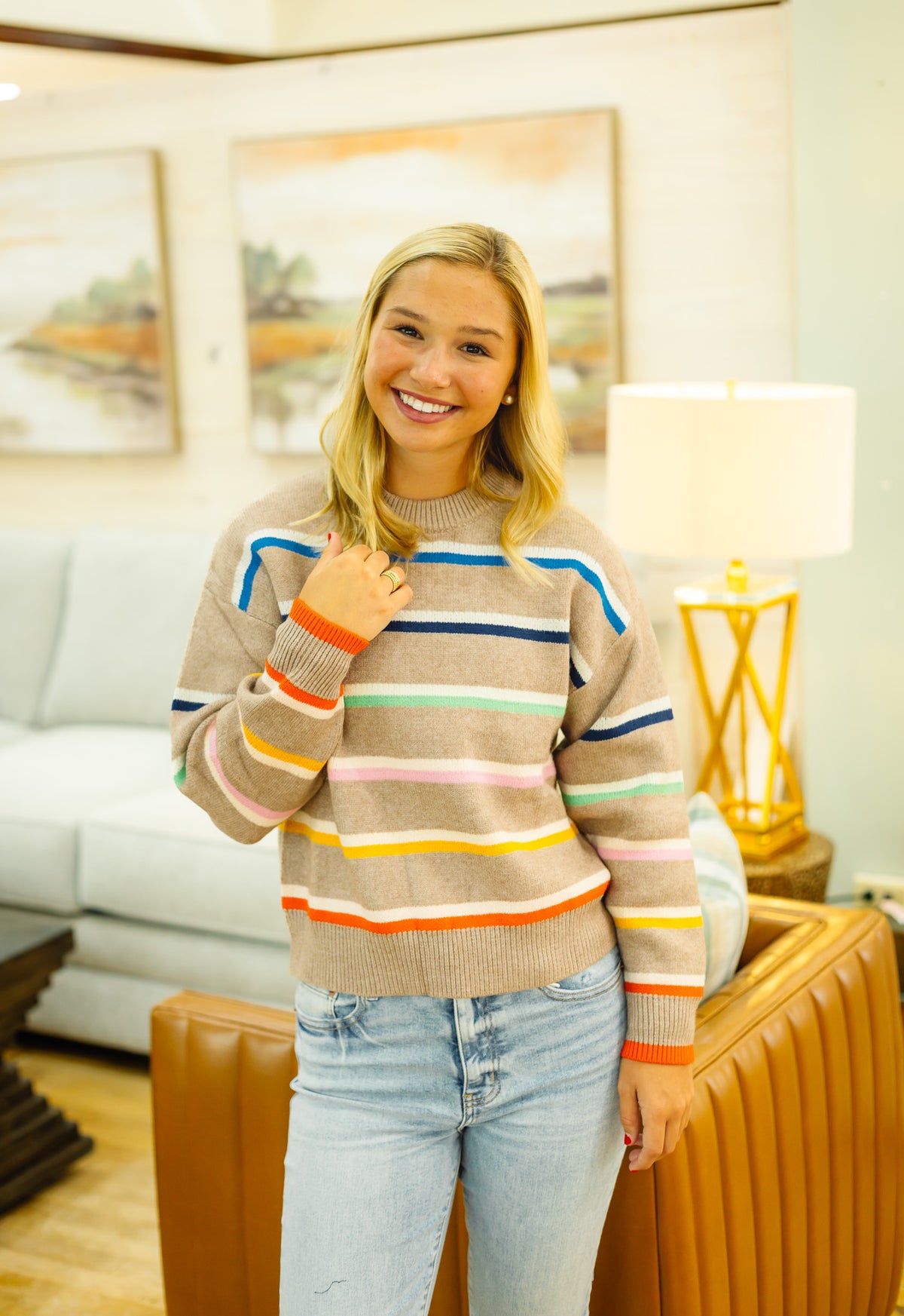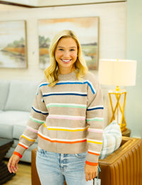 The Tala Sweater combines cozy knit comfort with stylish stripes, perfect for elevating your everyday look. Crafted from a soft blend of viscose, nylon, and polyester, it offers a lightweight yet warm feel. Designed in the USA, its flattering fit features a 21-inch body length and 38-inch bust and sleeve measurements in size S, ensuring both comfort and style. Ideal for layering or wearing on its own, this sweater adds effortless charm to any wardrobe.
