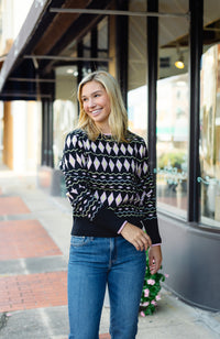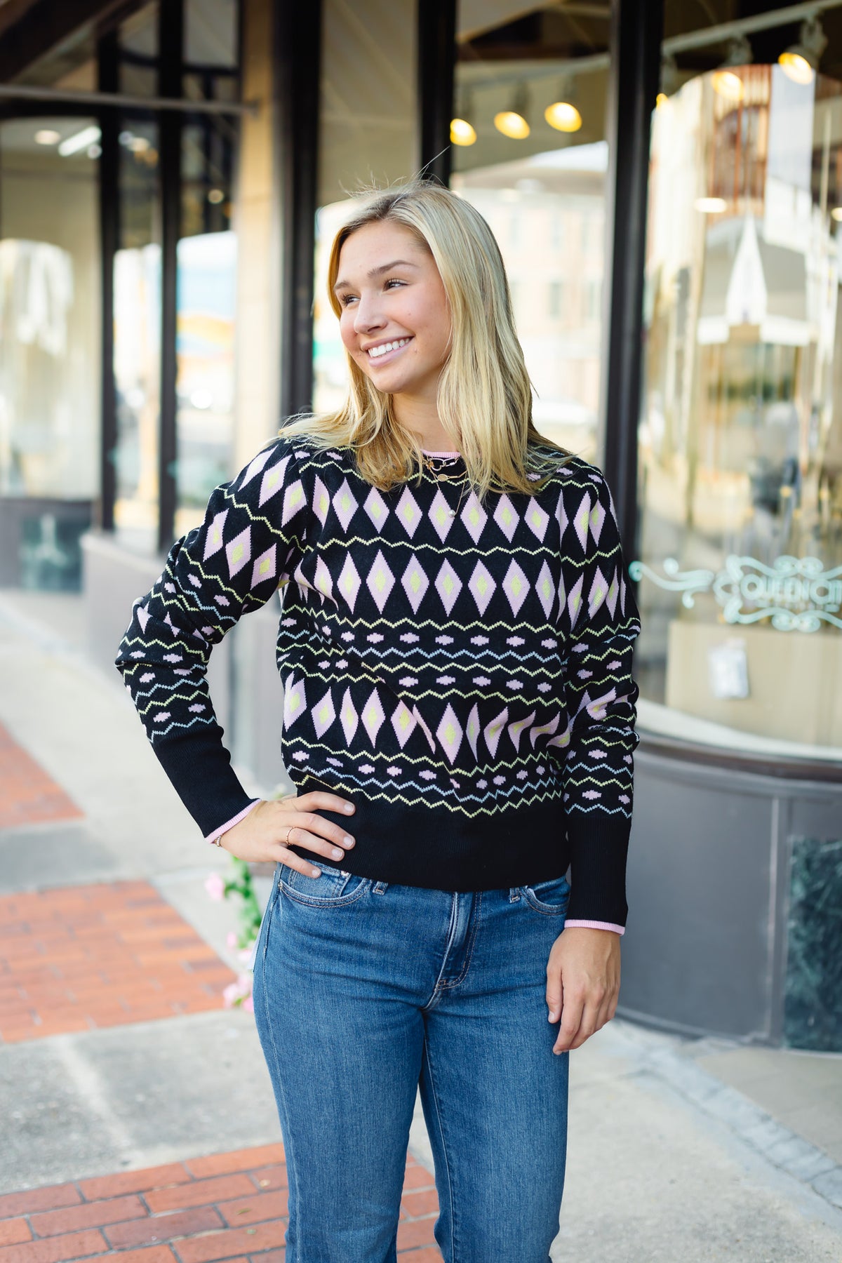 Elevate your style with The Tetra Sweater, featuring a bold black multi geometric Aztec print that adds a striking edge to any outfit. Crafted for comfort and designed to turn heads, this sweater blends cultural-inspired patterns with modern wearability. Perfect for layering or solo statement looks, it offers a unique way to express your individuality while staying cozy. Make your wardrobe unforgettable with this standout piece.
